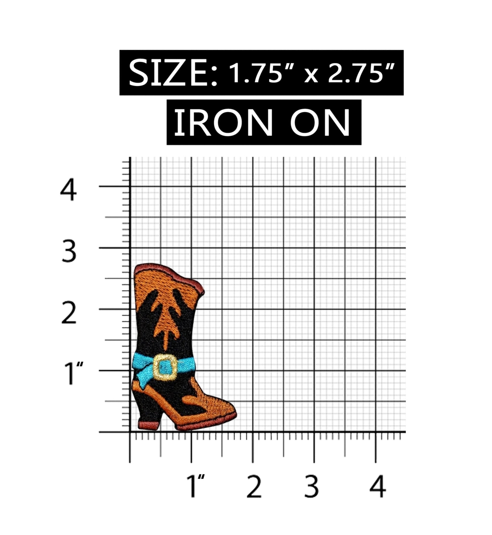 ID 1360 Leather Cowboy Boot Patch Tanned Hide Strap Embroidered Iron On Applique