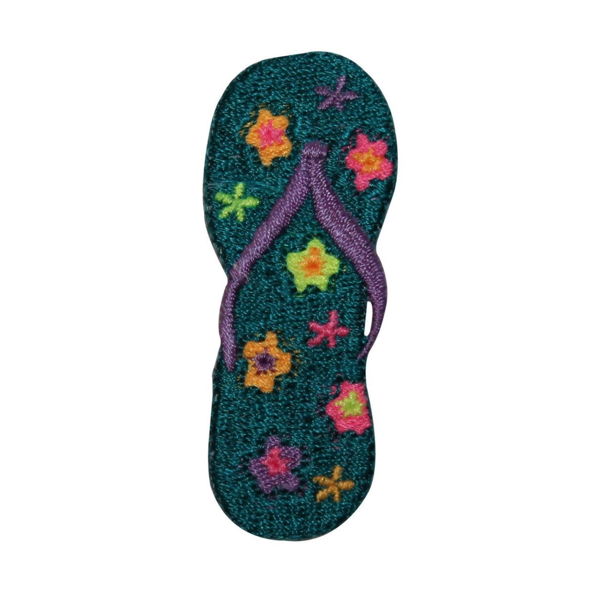 ID 7828 Flower Flip Flop Patch Thong Beach Fashion Embroidered Iron On Applique