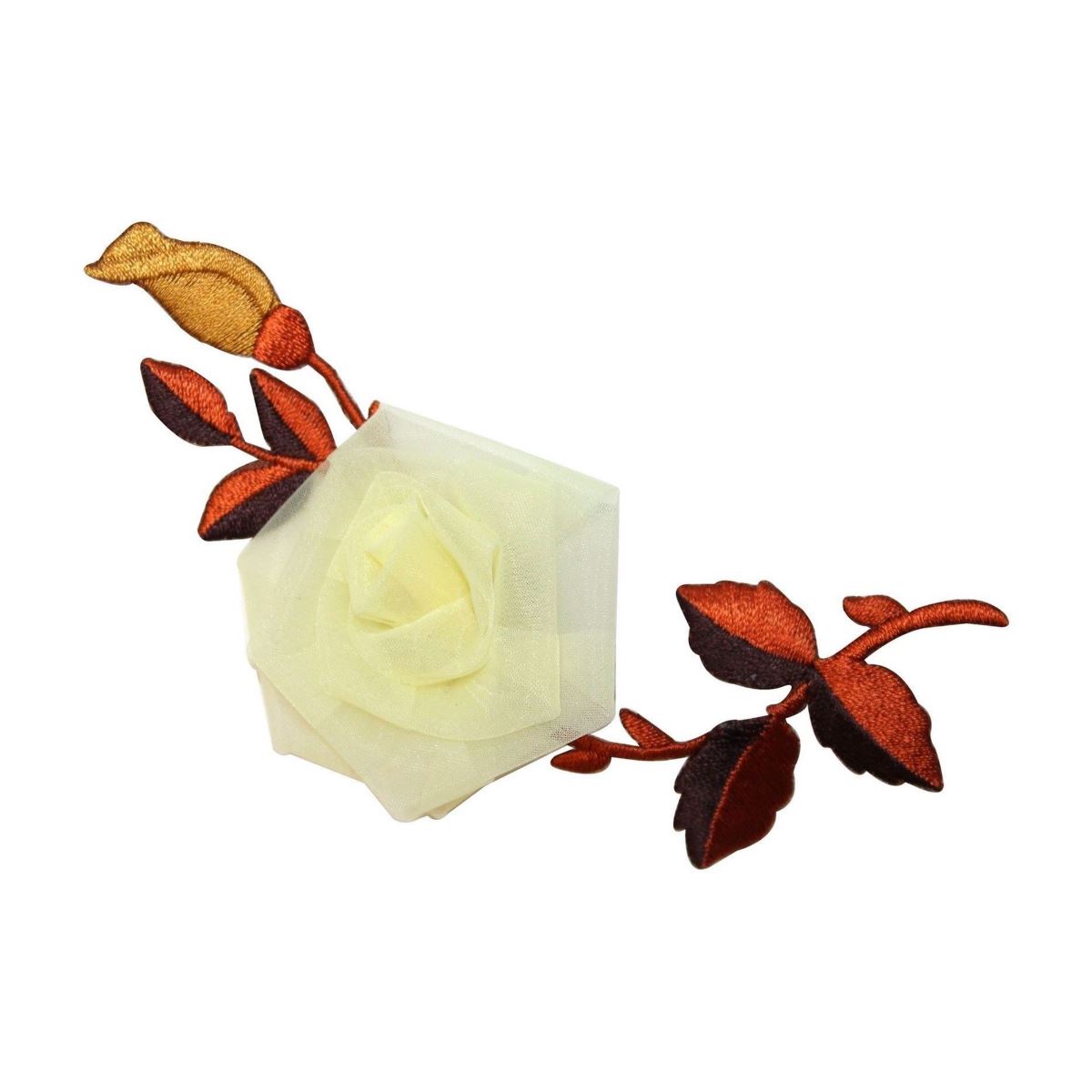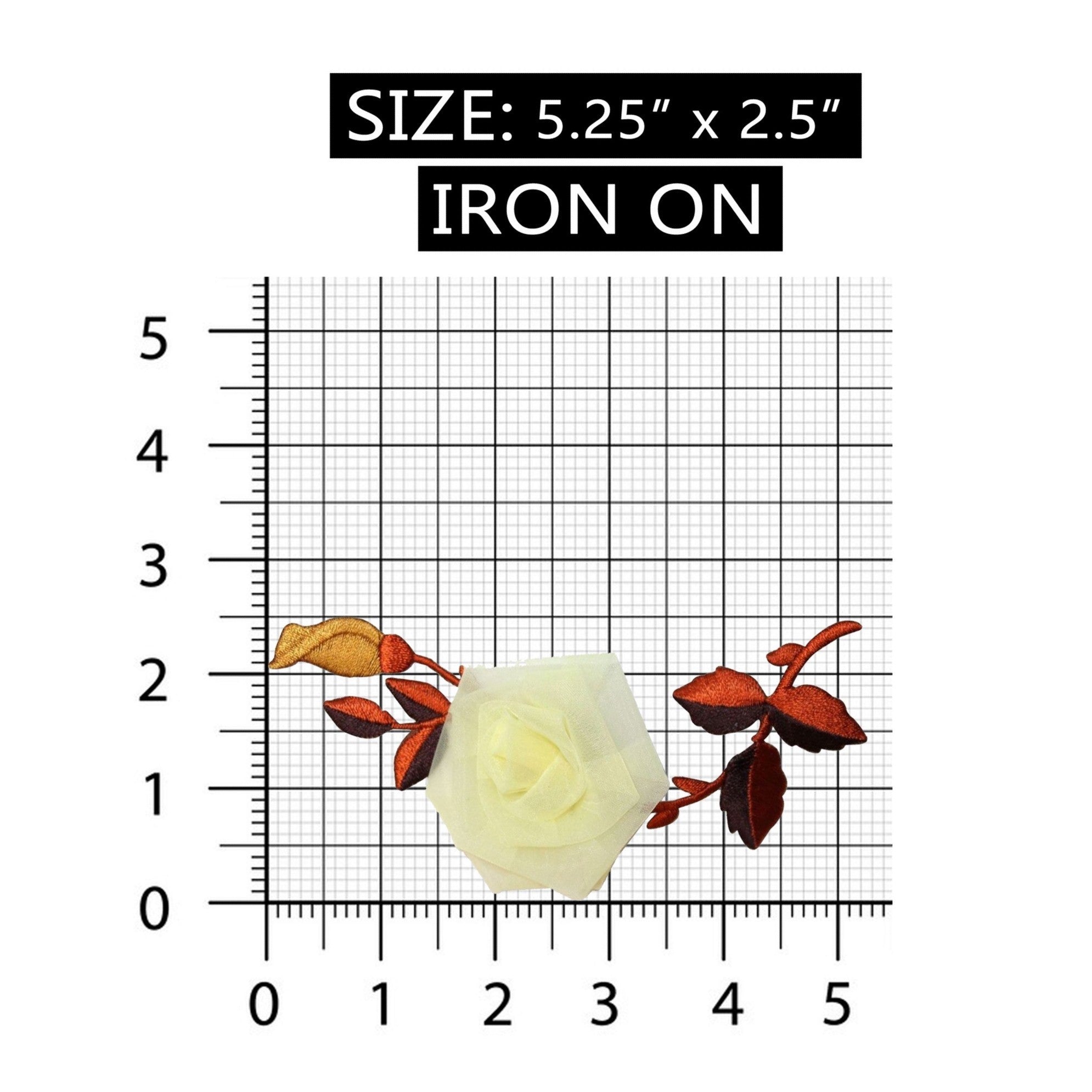 ID 6010 Lace 3D Rose Patch White Flower Stem Vine Embroidered Iron On Applique
